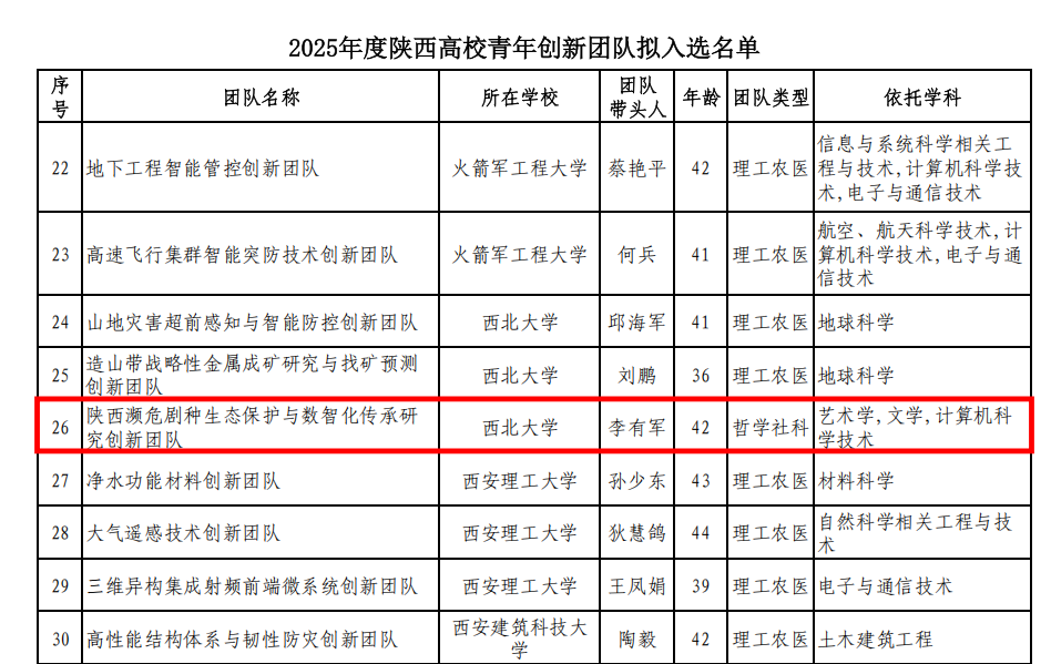 - 2026/01/28李有军教授团队获批2025年度陕西高校青年创新团队