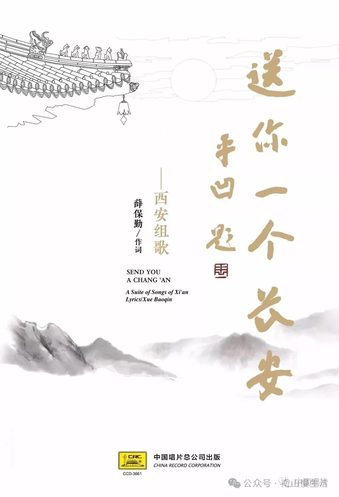 如果说《送你一个长安》是用如椽巨笔以大写意的方式描绘西安的总体形象的话,那么,《雁塔夜吟》《曲江写意》《终南问禅》《乐游原随想》《天地长安》《骊山故事》等十几首诗与歌,则是对西安人文自然、古今神韵细致入微的工笔细描,连环展现。尤其是集成之作,沿用“送你一个长安”为题,被称为一幅一望千年的音乐画卷、诗与歌交响的《西安组歌》,更是以大长安亘古长青、内涵丰富的标志性历史文化遗存为载体,深入挖掘,精心提炼其独特的历史文化元素,用跃动的音乐语言娓娓道来,敲响晨钟暮鼓,思接千载,意会古今。组歌将传统与现代融为一体,将昨天与今天融为一体,将追思与展望融为一体,徐徐展开一幅西安灵动而多彩的壮美画卷,这块土地的悠远悠长,这座古都的精致经典,这方城池的神秘神奇……以及它的博大与时尚,成为了当之无愧的西安文化名片。