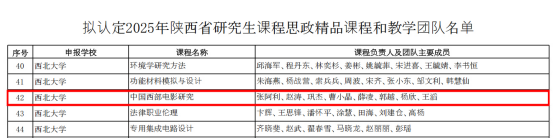 近日,陕西省教育厅公示《2025年陕西省研究生课程思政精品课程和教学团队名单》,我院张阿利教授主持的研究生课程《中国西部电影研究》成功获批。本次获批2025年省级精品课程与教学团队,体现了省教育厅对我院研究生课程思政精品课程建设在价值引领与专业教学融合方面的高度认可,为构建高水平研究生育人体系注入了新动力,进一步彰显了我院戏剧与影视学的学科优势与品牌影响力。