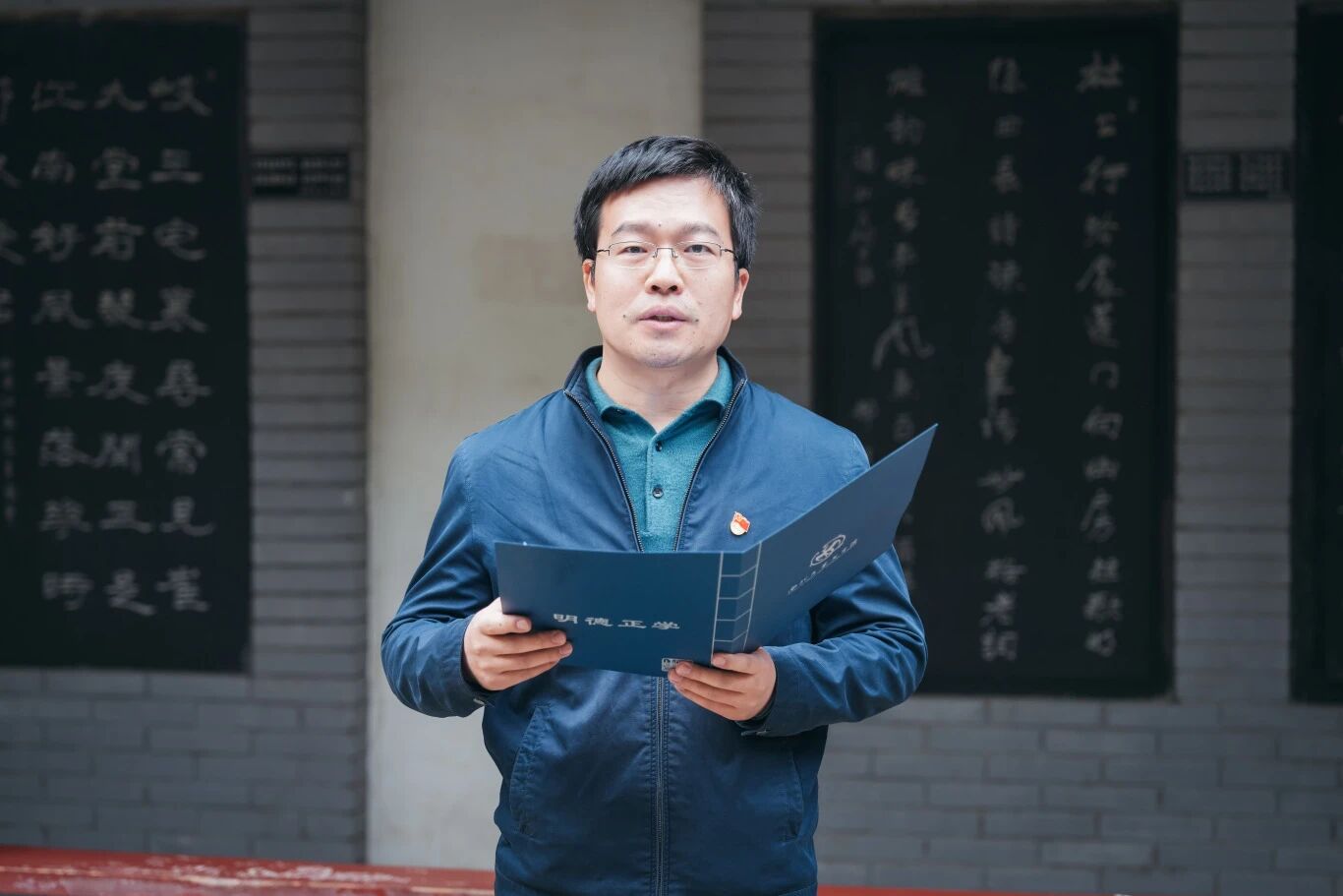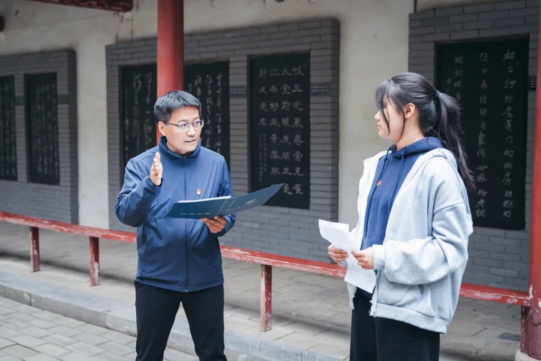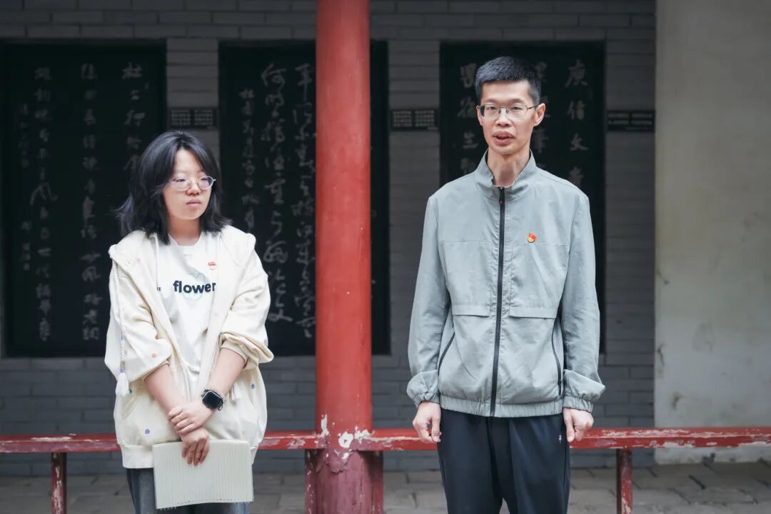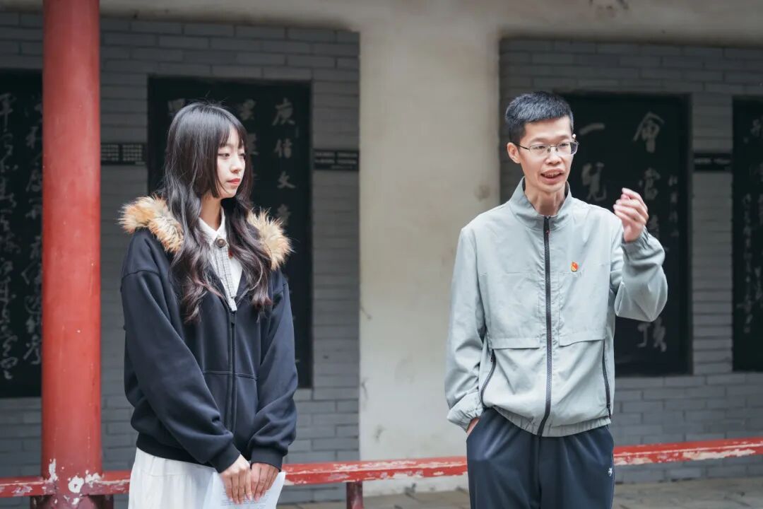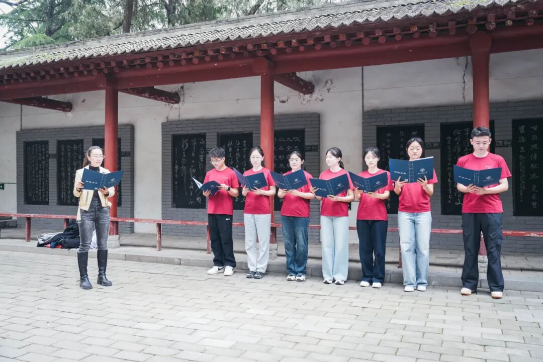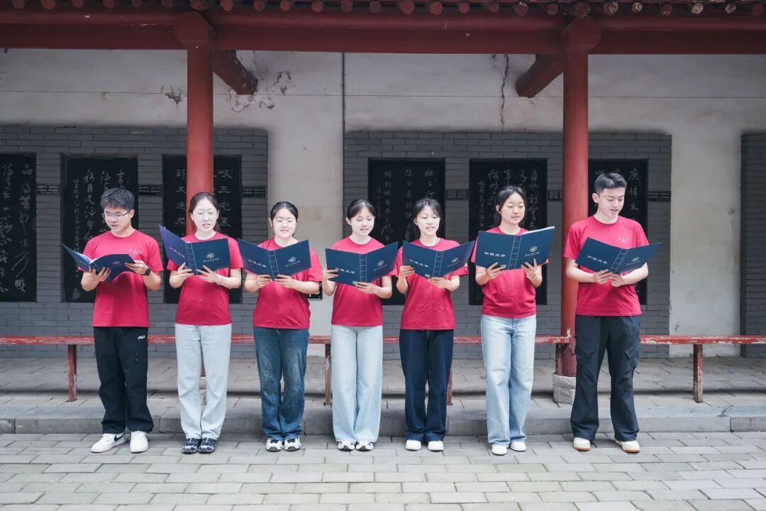 随后,在杜公祠庭院内举行了杜诗朗诵环节。本科生党支部选派的入党积极分子代表、团员青年代表饱含深情地诵读了《丽人行》《春望》《月夜》《曲江二首》《茅屋为秋风所破歌》等杜甫经典诗篇。声声朗诵间,诗圣忧国忧民的赤子之心与千年之后的思想回响交相辉映,激荡起每一位党员内心深处对人民、对时代的责任共鸣。