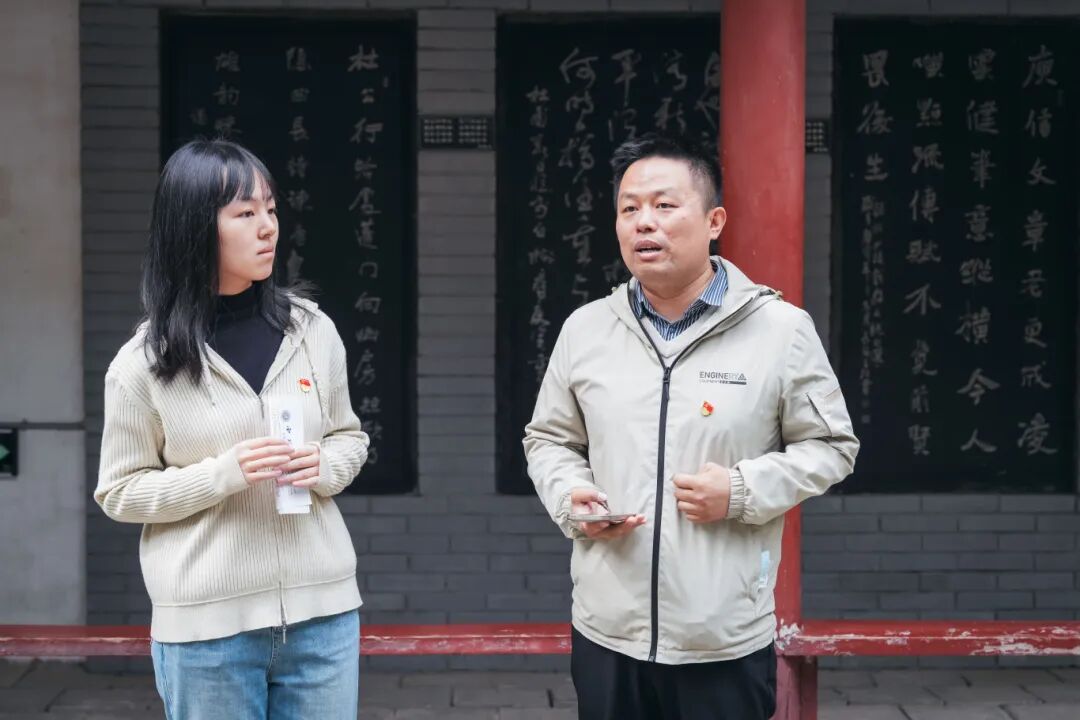活动伊始,全体党员在讲解员的带领下有序参观杜公祠。大家依次瞻仰明清时期重修碑记六通,驻足诗圣堂杜甫塑像前,深入了解杜甫在长安十年的行迹与心路历程。通过“杜子美年谱”“杜甫在长安行迹图”“杜甫生平足迹图”等展陈内容,同志们回顾了诗圣“穷年忧黎元”的生命轨迹,切身感受其“位卑未敢忘忧国”的深沉情怀。
