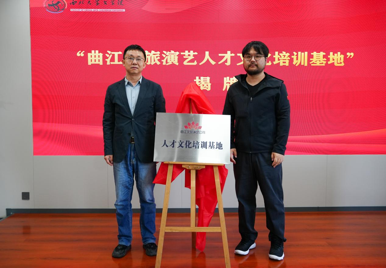 作为此次校企合作的重要组成部分,双方互设实践基地,以实体阵地将协议内容落到实处。西安曲江文旅演艺发展有限公司总经理陈朋先生与西北大学电影学院院长、文学院副院长张阿利教授共同为设立于曲江文旅的“西北大学戏剧与影视实践教学基地”揭牌;叶原副总经理与杨遇青副院长共同为设立于西北大学文学院的“曲江文旅演艺人才文化培训基地”揭牌。双基地的设立标志着校企双方的合作由制度层面向实践层面全面延伸,在实践教学、人才培育与行业培训等方面构建起稳定可持续的协同机制,为戏剧影视专业人才的培养提供了坚实的双向支撑平台。