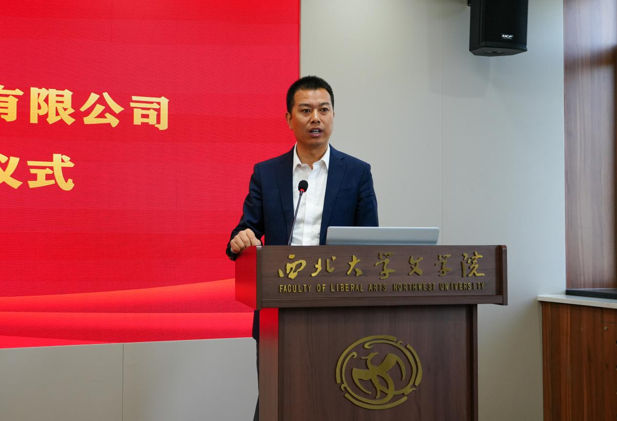 仪式开始前,西安曲江文旅演艺发展有限公司副总经理叶原先生介绍了公司在演艺运营、文旅项目开发等方面的发展概况;西北大学文学院院长助理、广播电影电视系主任巩杰教授系统介绍了学院戏剧与影视学科建设现状及实践教学体系,为双方合作奠定了深厚的共识基础。