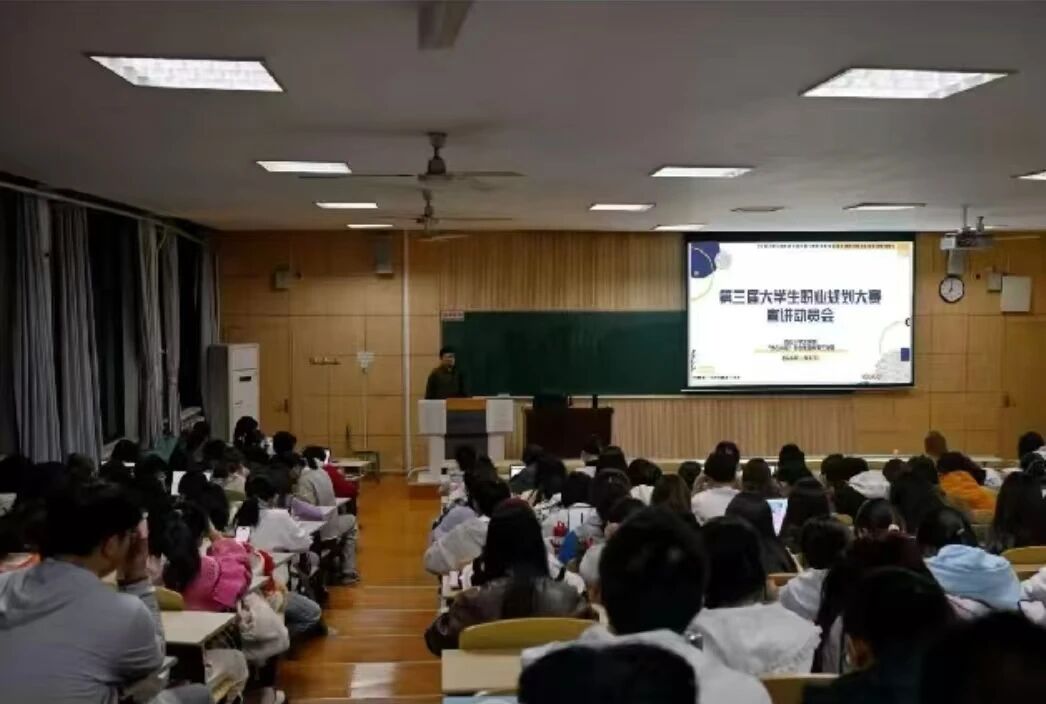 为进一步提升学生职业生涯规划能力,帮助我院学子充分备赛,实现以赛促学,引导学生树立正确的成才观、就业观和择业观,科学合理规划学业与职业发展,2025年11月17日晚,“文心林薮”职业生涯教育特色工作室在太白校区7507教室举办第三届大学生职业规划大赛宣讲动员会。会议由辅导员杨崧维主持。