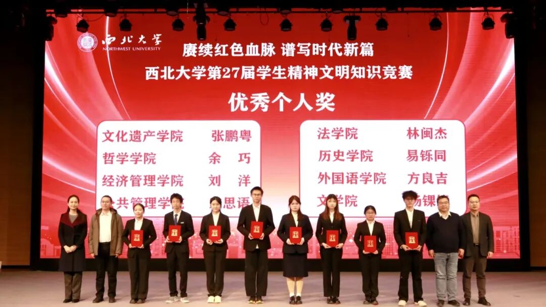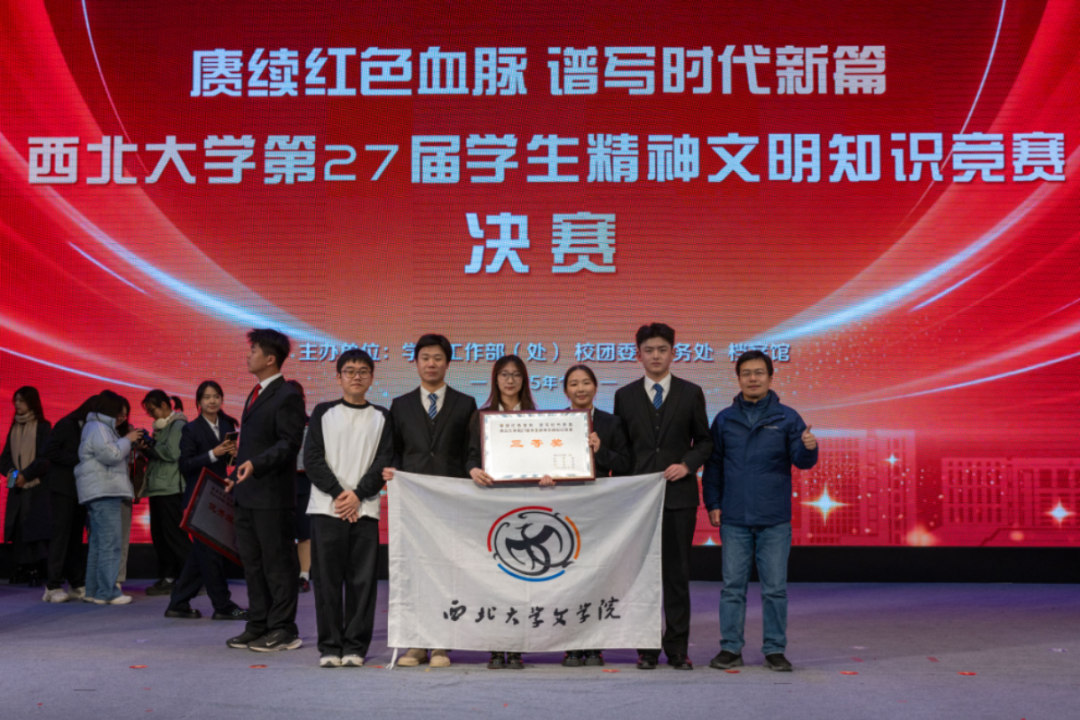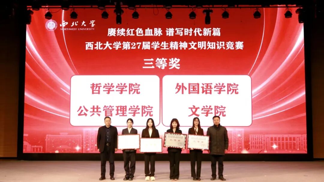 10月,文学院积极组织学生在易班系统参加初赛,并选拔成绩较优的四名同学参加学校统一组织的复赛。11月26日,我校“赓续红色血脉 谱写时代新篇”第27届学生精神文明知识竞赛决赛于长安校区学生活动中心报告厅举行,2025级中国语言文学类杨雨喆、杨锞锋、任思源,广播电视编导专业李宗泰代表我院参赛。院党委副书记陈柯,2025级本科生辅导员杨崧维,学院学生代表50余人现场观赛。