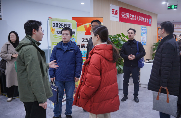 为深化校企协同育人机制,精准对接用人单位人才需求,拓宽毕业生就业渠道,2025年11月27日,文学院同数学学院、城市与环境学院、生命科学学院师生代表赴乐读教育培训学校参观交流。乐读师资选聘部西北区负责人王乐、师资选聘顾问刘媛及相关工作负责人参加活动。