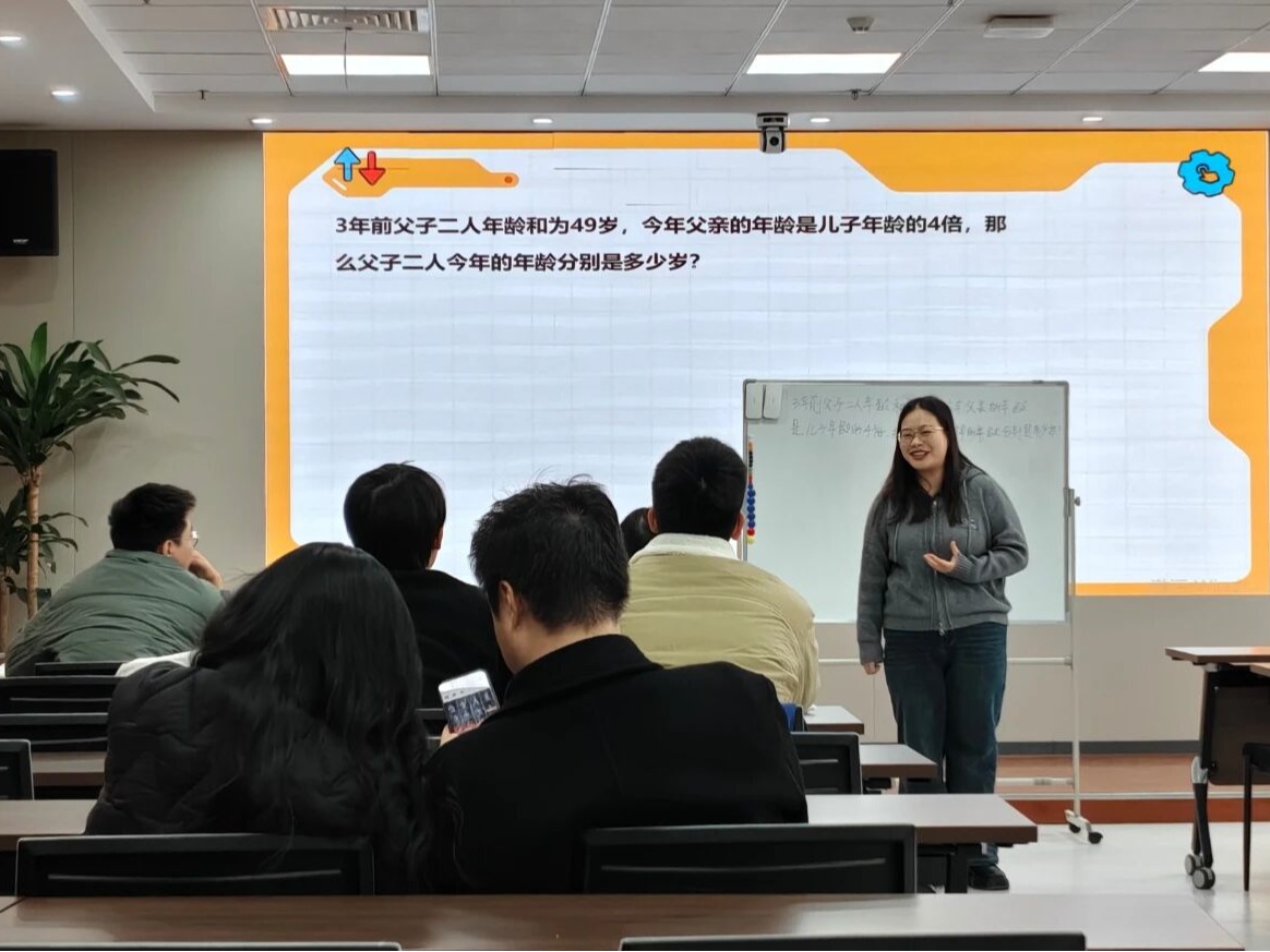 随后,高圆圆老师以古诗《过故人庄》为例,展示了小学语文教学如何兼顾趣味性与知识性;尹本田老师则通过“年龄和倍问题”,演绎了如何运用线段图等工具将抽象的数学概念具象化。两位老师的示范课逻辑清晰、互动巧妙,展现了深厚的教学功底。在经验分享环节,老师们从面试流程、试讲技巧、仪表仪态到答辩策略进行了全面拆解,帮助学生系统梳理面试各环节的应对策略。