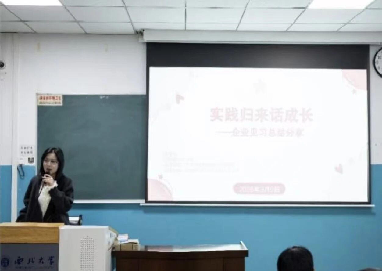 2025级王若晞同学,则分享了在基层物业公司处理矛盾纠纷的政企实习感悟。她将课堂所学灵活运用于实际工作,在具体而微的基层服务中,践行了“文以载道、学以致用”的理念,用行动诠释了青年学子的责任感。