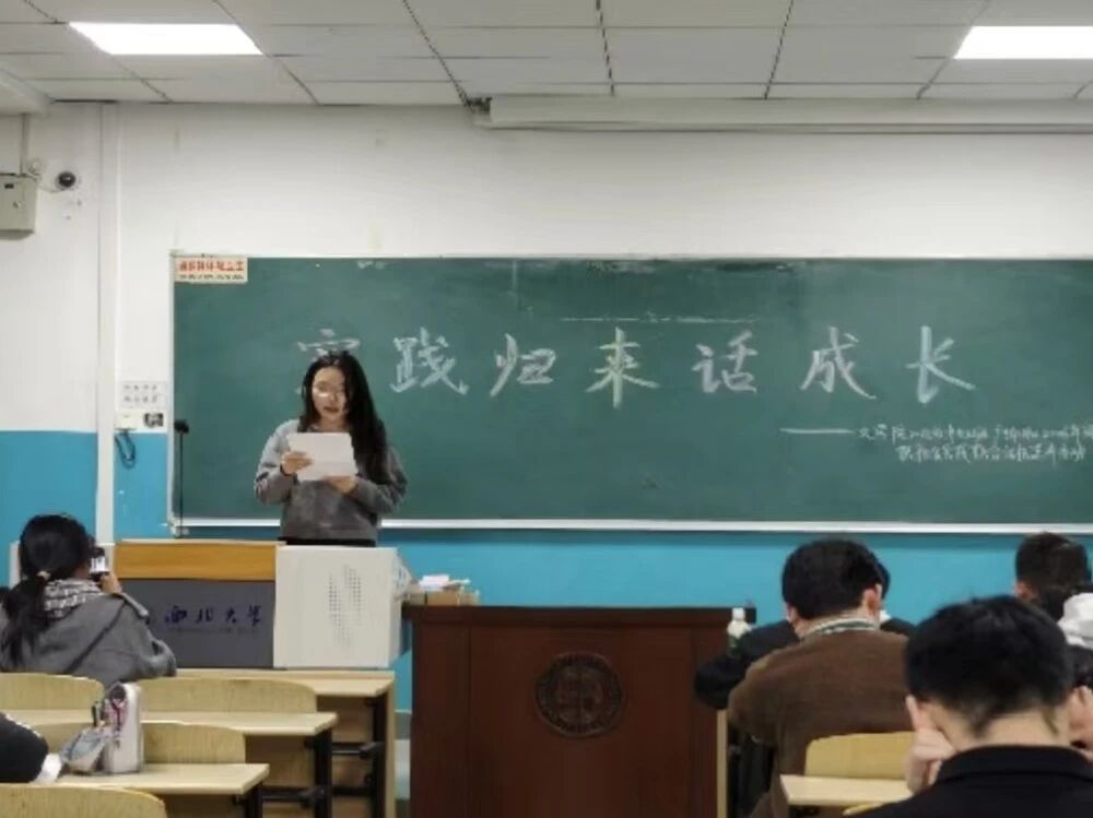 活动期间,各基层团支部积极行动,纷纷组织开展主题分享会。参与实践的团员代表们走上讲台,通过成果展示、经验交流与互动讨论,全面复盘了实践过程。他们围绕项目背景、创新举措、心路历程与社会观察,畅谈收获与思考,充分展现了文学院学子深入基层、知行合一、反哺于行的青春风貌,在支部内部营造了“崇尚实践、乐于奉献”的浓厚氛围。