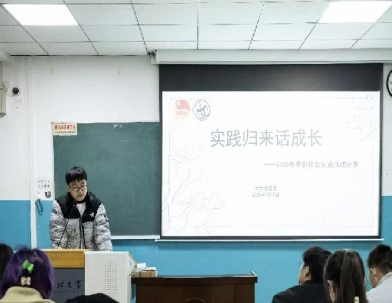 为深入总结2026年寒假社会实践成果,推广先进经验,激发文院学子学以致用、服务社会的热情,院团委于2026年3月6日至10日成功举办了“实践归来话成长”系列宣讲活动。活动通过支部分享与集中宣讲相结合的形式,搭建了朋辈引领、交流互鉴的生动课堂,有效提升了实践育人效能。