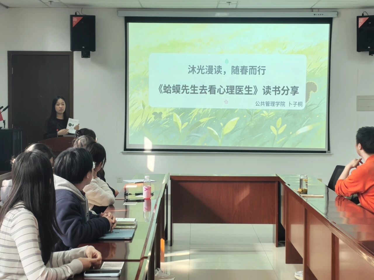 卜子桐同学结合自身对心理成长与情绪疗愈的关注,分享了英国心理学家罗伯特·戴博德的经典著作《蛤蟆先生去看心理医生》。她以书中抑郁的蛤蟆先生通过十次心理咨询走向自我疗愈的故事为主线,简要梳理了这部大众心理学入门作品的核心内容:从生活失序、被迫咨询,到回溯童年、直面创伤,最终实现自我觉醒与成长。她特别指出,蛤蟆先生长期处于“我不好,你好”的心理位置,习惯性讨好与自我贬低正是其抑郁的根源,而真正的疗愈始于“为自己负责”——认识到情绪由自身选择,停止归咎于他人与环境。她认为,阅读《蛤蟆先生去看心理医生》,既是一次与自我内心的深度对话,也是一场在春日里与自己和解的修行——唯有成为自己的“苍鹭医生”,才能真正走出情绪的荒原,沐光而行。