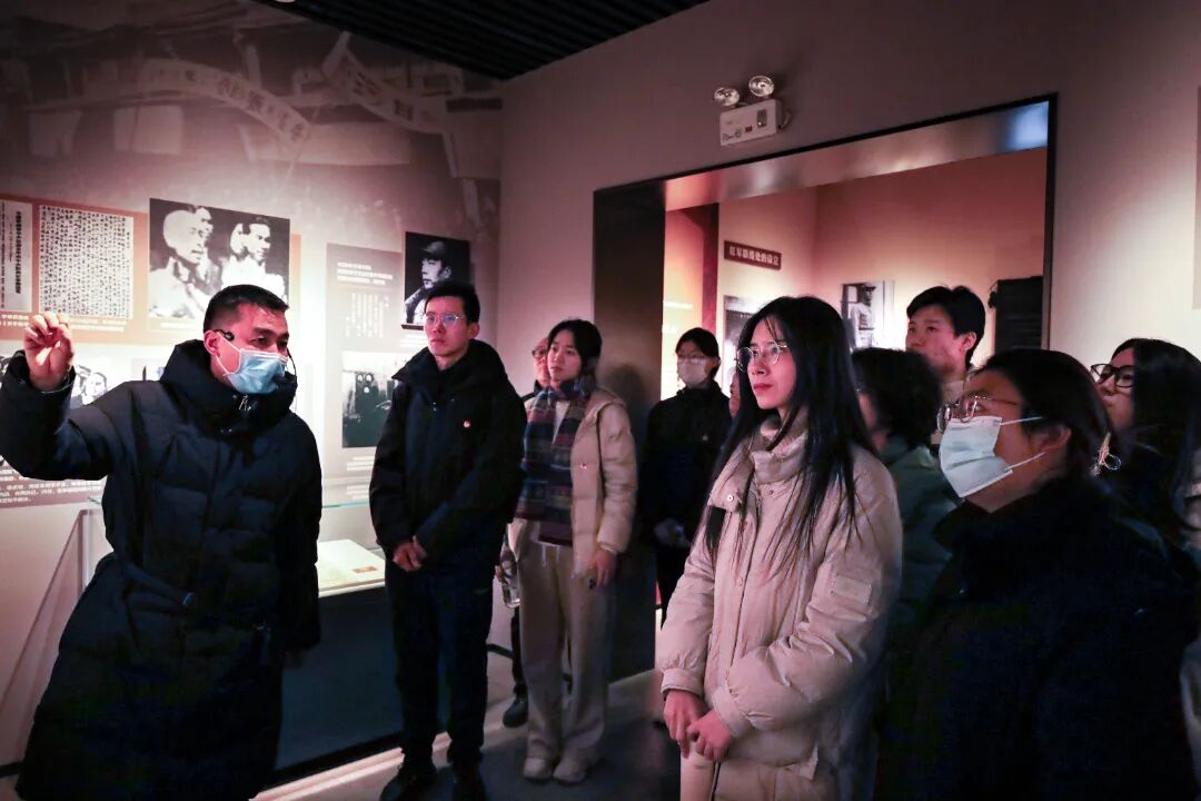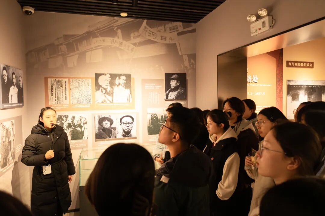 为深入学习党的二十届四中全会精神,贯彻落实习近平总书记关于青年工作的重要思想,引导青年学子坚定理想信念、传承红色基因、勇担时代使命,在纪念中国人民抗日战争暨世界反法西斯战争胜利80周年之际,12月20日,文学院2025级本科各班级团支部联合校“青马工程”知行一班团支部赴八路军西安办事处纪念馆,开展“传承红色血脉,厚植爱国情怀”主题团日活动。文学院专职团干部、校“青马工程”知行一班班主任杨崧维,文学院2025级本科各班级团支部团员代表,校“青马工程”知行一班全体学员50余人参加活动。活动由胡冠琼同学主持。