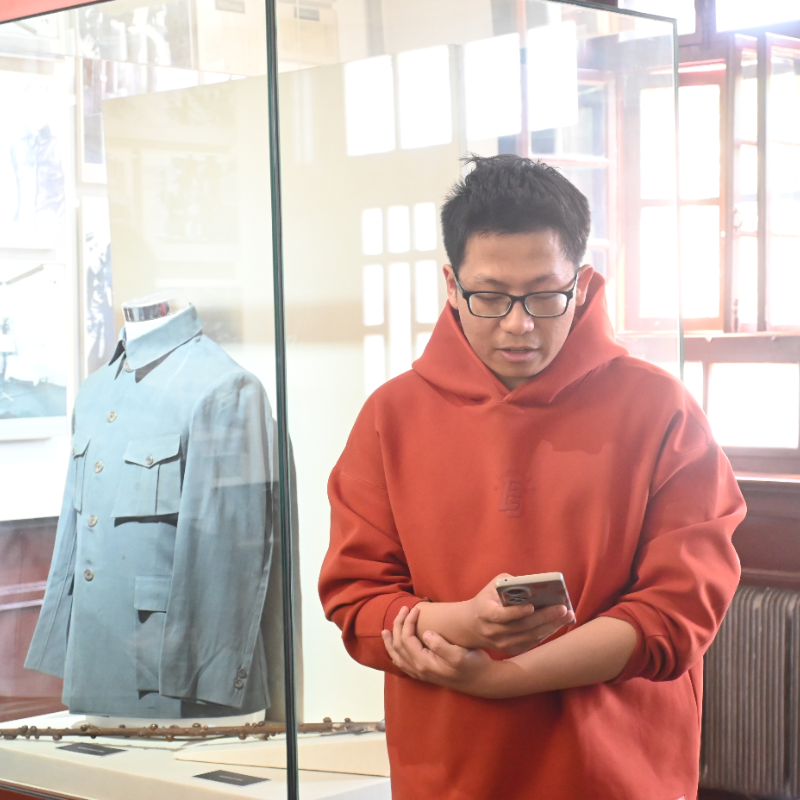 活动伊始,与会党员参观了“虎将雄风一世豪——杨虎城将军生平陈列”展览,讲解员以时间为脉络,用详实的史料生动讲述系统介绍了杨虎城将军从投身民主革命、主政陕西建设,到发动西安事变、力主联共抗日,乃至身陷囹圄仍坚贞不屈的光辉一生。在聆听历史细节、深入历史场景中,师生党员深切领受了革命先辈为实现国家独立、民族解放所做出的巨大牺牲与历史贡献。