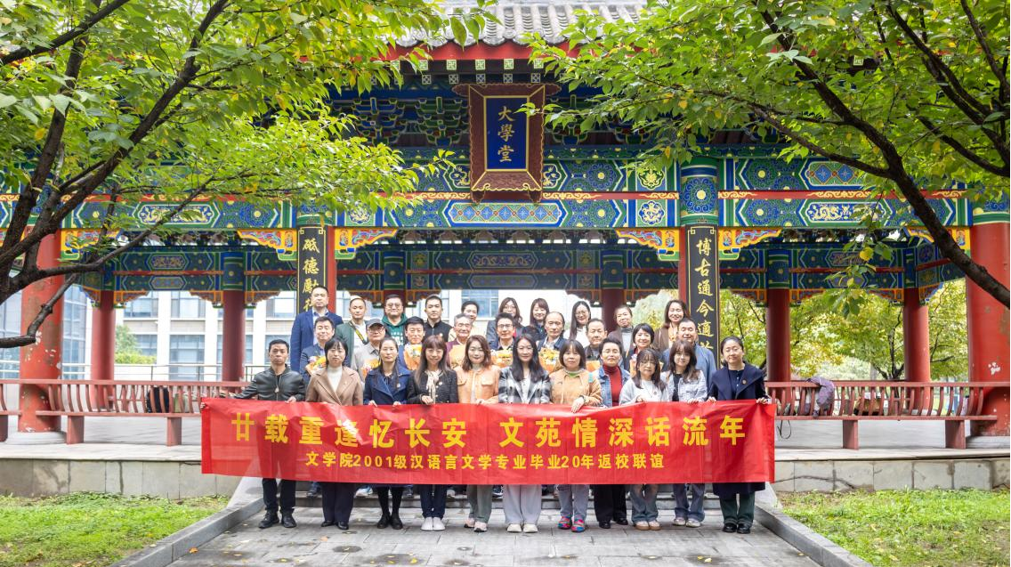 秋意正浓,情暖校园。2025年10月19日,文学院2001级汉语言文学专业校友以“廿载重逢忆长安,文苑情深话流年”为主题,举行了毕业20周年返校活动,在长安校区与太白校区度过了一段充满感动与回忆的温馨时光。会场...